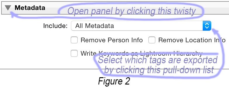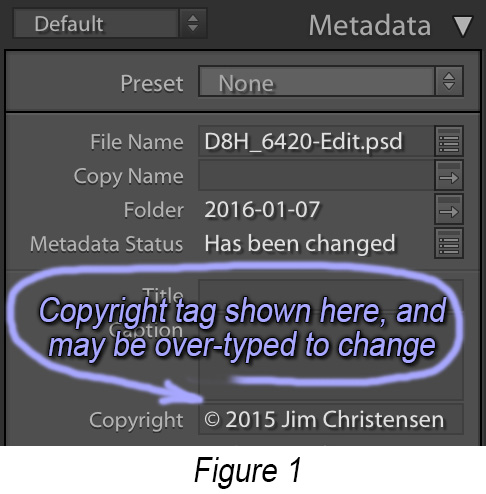 panel (Fig.1) on the right side of Lightroom's Library Module screen lets you do the same thing[4]. Also note that when you export images from Lightroom, the Metadata