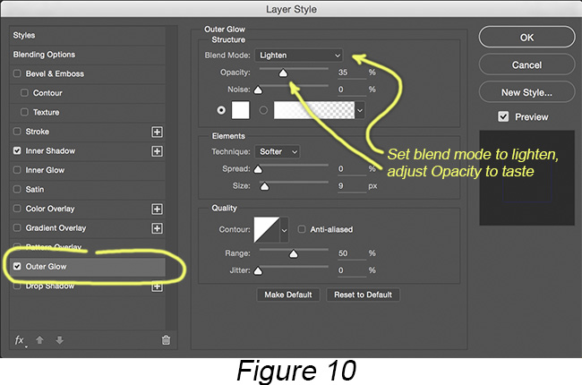 to weaken the watermark. The glow color should be white. Figure 10 shows these adjustments.