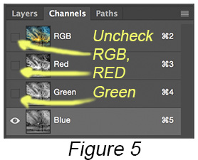 ) independently, and stealthily embed a (hopefully) invisible message into just the blue channel, that won't be seen when all three channels are viewed simultaneously, but will be clearly visible when the blue channel is viewed separately. That's it in a nutshell. The rest of this section explains how to do it in Photoshop (and Photoshop Elements).